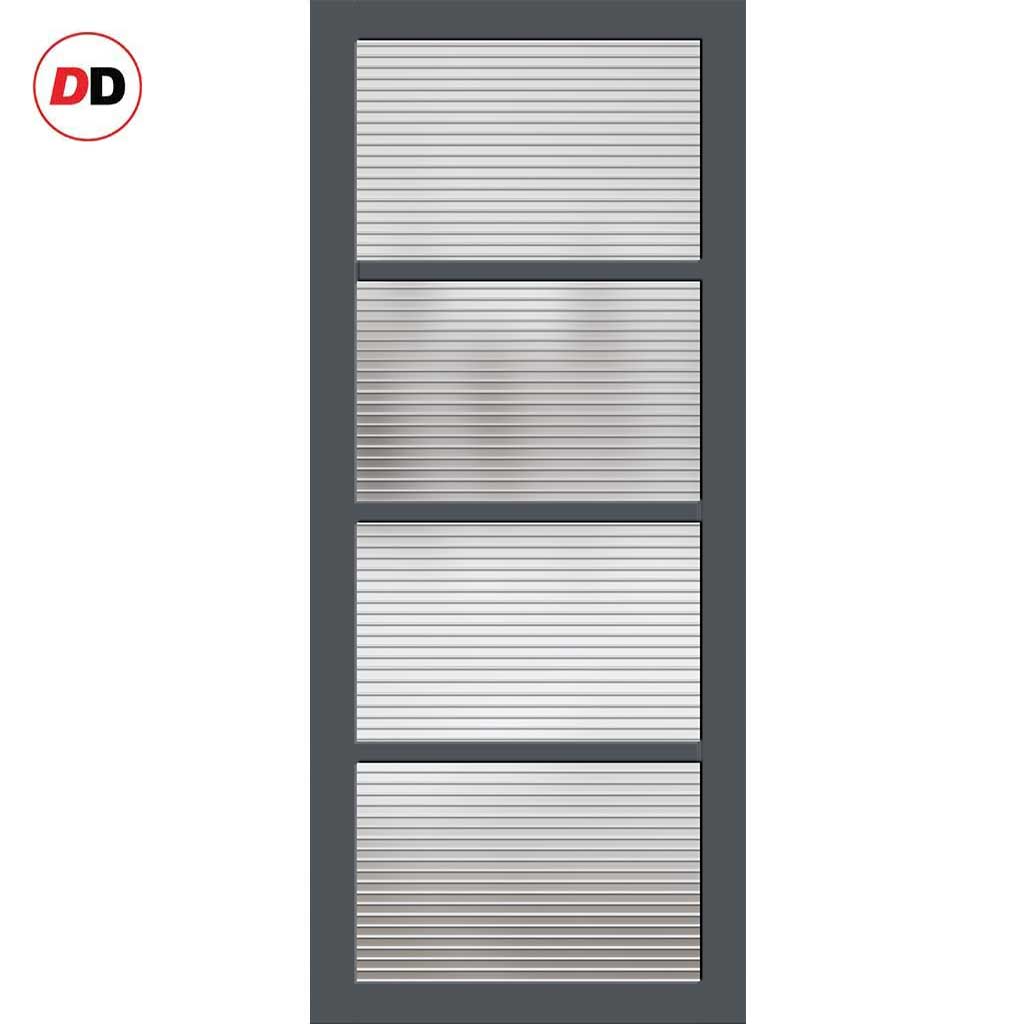 Brooklyn 4 Pane Solid Wood Internal Door UK Made DD6308 - Clear Reeded Glass - Eco-Urban® Stormy Grey Premium Primed