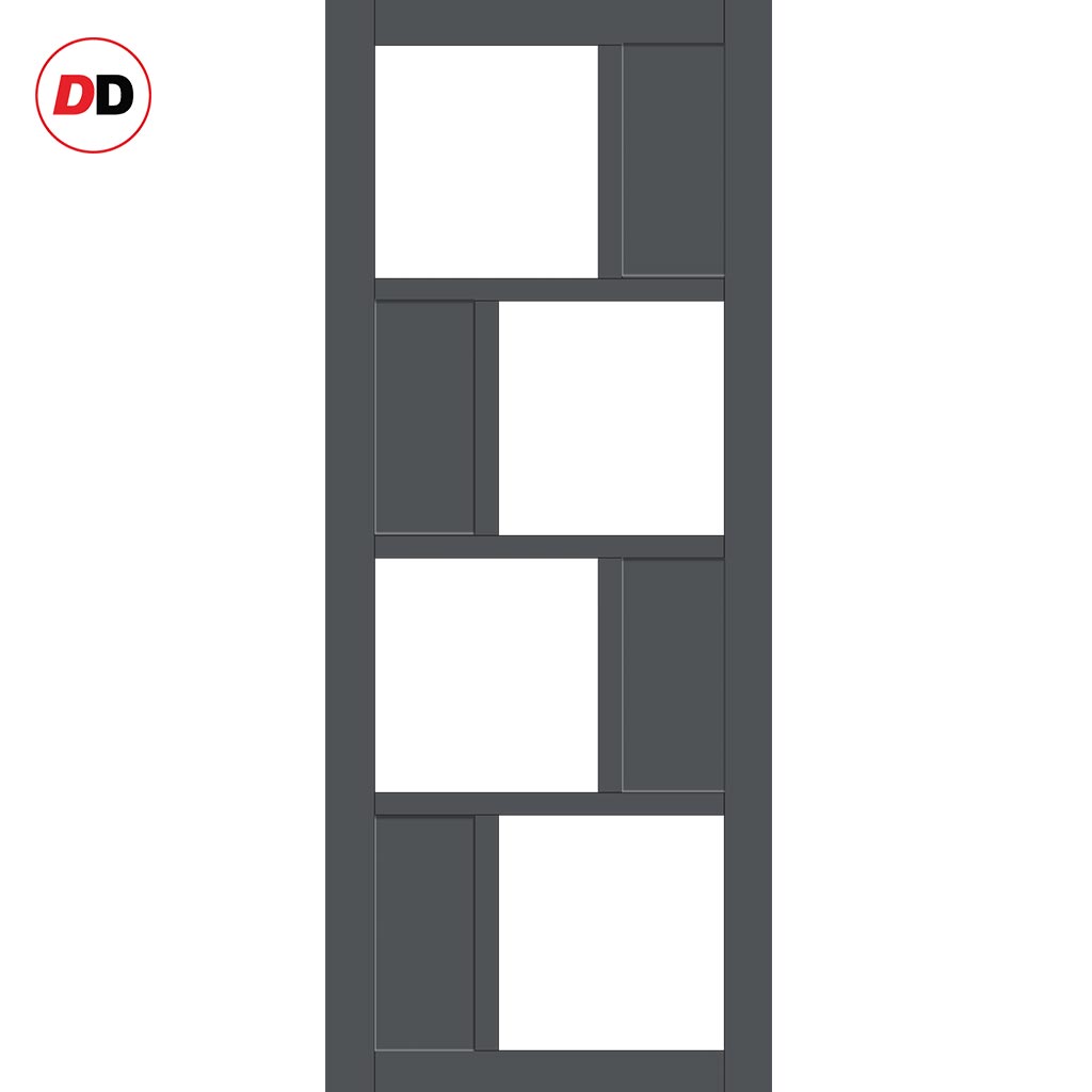 Handmade Eco-Urban Cusco 4 Pane 4 Panel Solid Wood Internal Door UK Made DD6416G Clear Glass - Eco-Urban® Stormy Grey Premium Primed