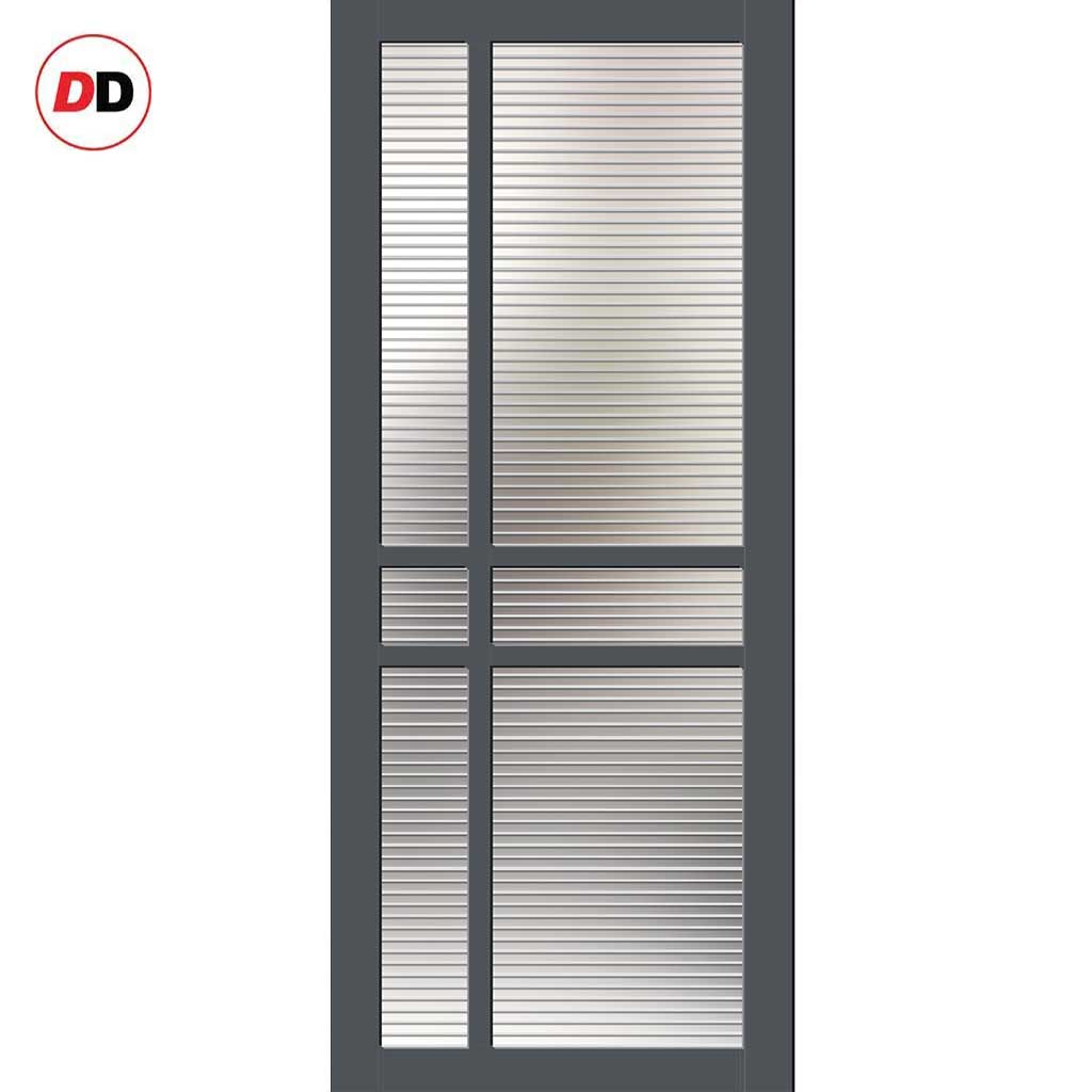 Glasgow 6 Pane Solid Wood Internal Door UK Made DD6314 - Clear Reeded Glass - Eco-Urban® Stormy Grey Premium Primed