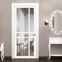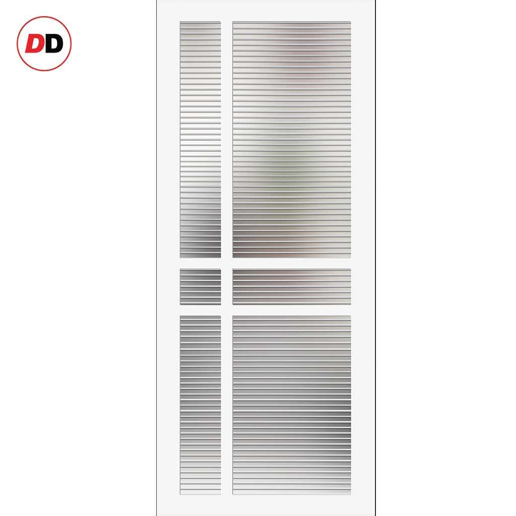 Glasgow 6 Pane Solid Wood Internal Door UK Made DD6314 - Clear Reeded Glass - Eco-Urban® Cloud White Premium Primed