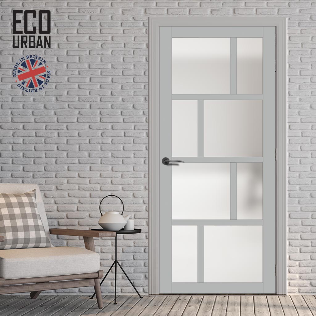 Handmade Eco-Urban Kochi 8 Pane Solid Wood Internal Door UK Made DD6415SG Frosted Glass - Eco-Urban® Mist Grey Premium Primed