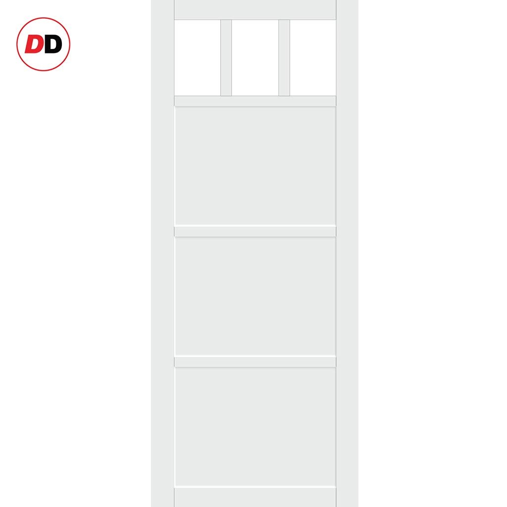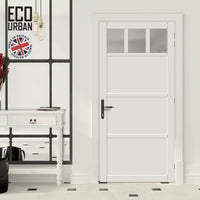 Handmade Eco-Urban Lagos 3 Pane 3 Panel Solid Wood Internal Door UK Made DD6427SG Frosted Glass - Eco-Urban® Cloud White Premium Primed
