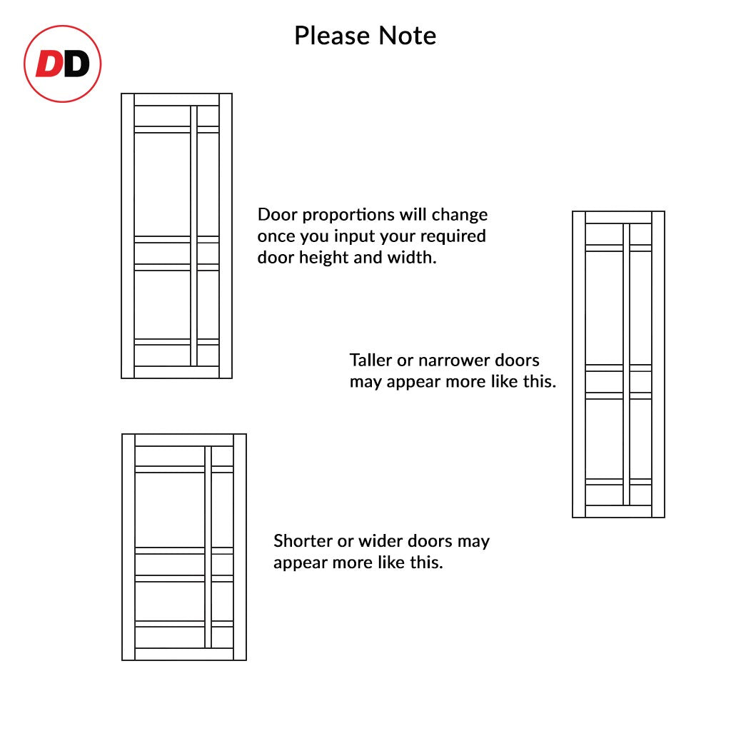 - Any internal dimensions for panels, lining or glass may vary depending on the door width you require.