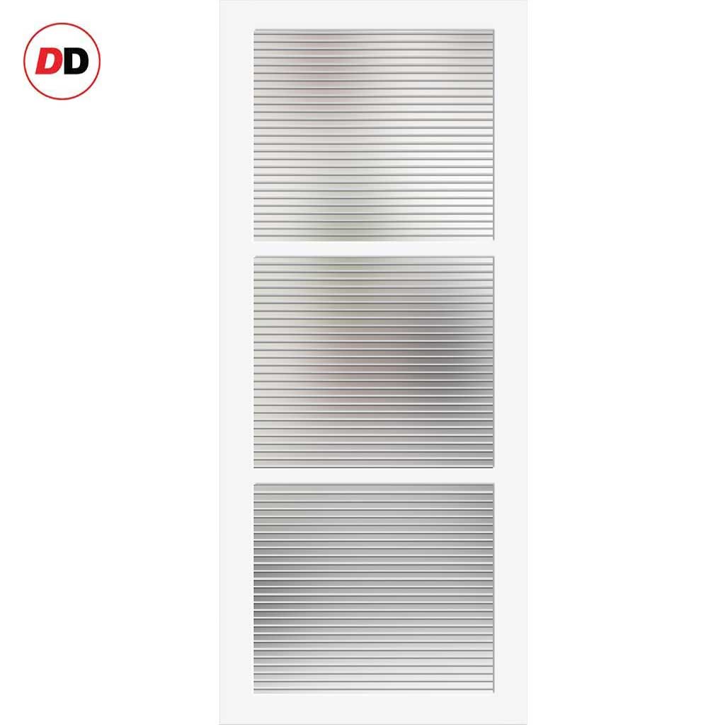 Manchester 3 Pane Solid Wood Internal Door UK Made DD6306 - Clear Reeded Glass - Eco-Urban® Cloud White Premium Primed
