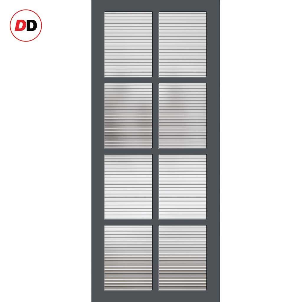 Perth 8 Pane Solid Wood Internal Door UK Made DD6318 - Clear Reeded Glass - Eco-Urban® Stormy Grey Premium Primed