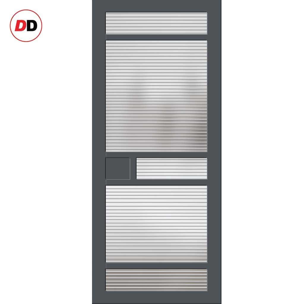 Sheffield 5 Pane Solid Wood Internal Door UK Made DD6312 - Clear Reeded Glass - Eco-Urban® Stormy Grey Premium Primed