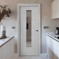 Linear 7 Panel Door - Clear Glass - White Laminated - Prefinished