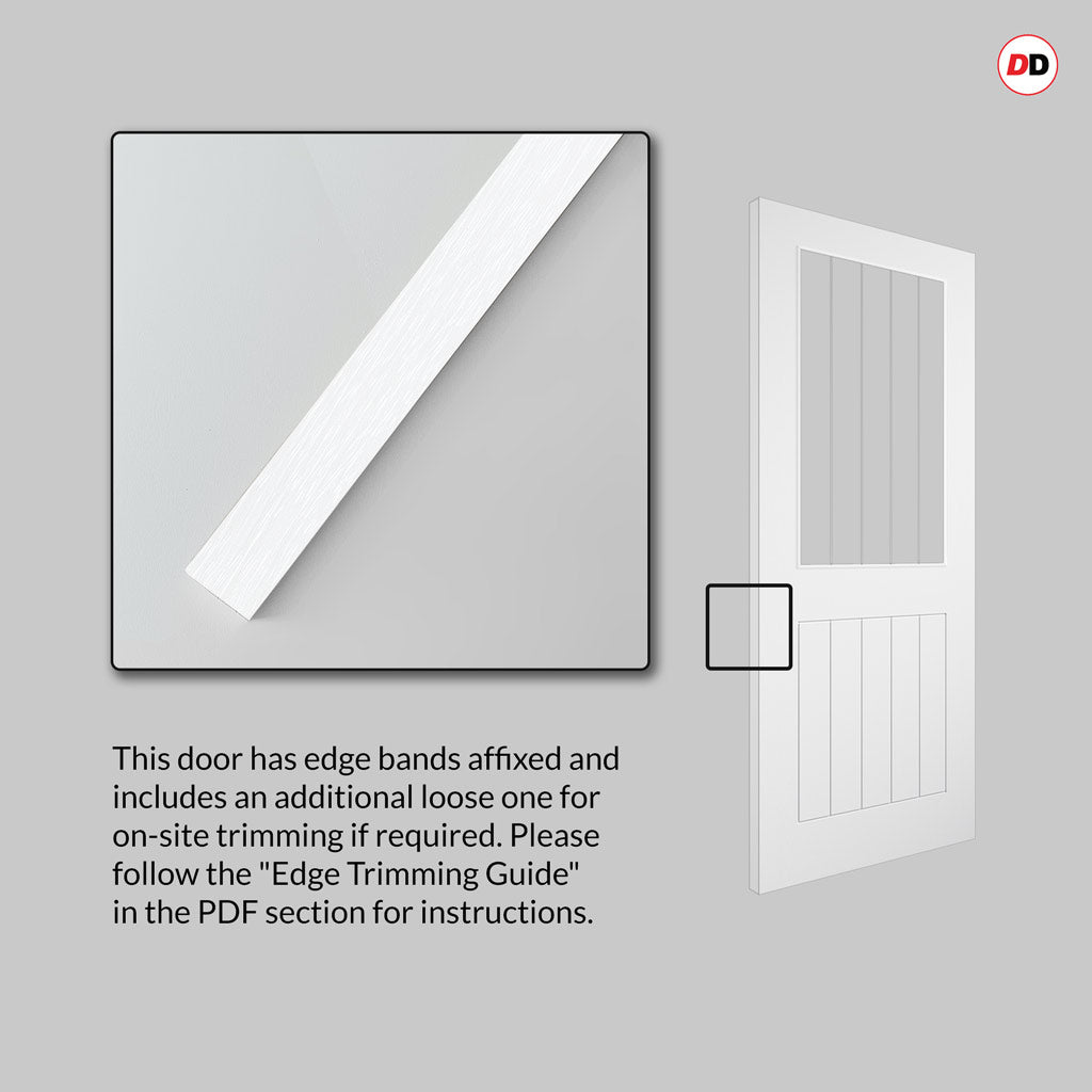 - As this door has edge bands already affixed, please see the Edge Trimming Guide in the PDFs section, if there is a need for on-site trimming.
