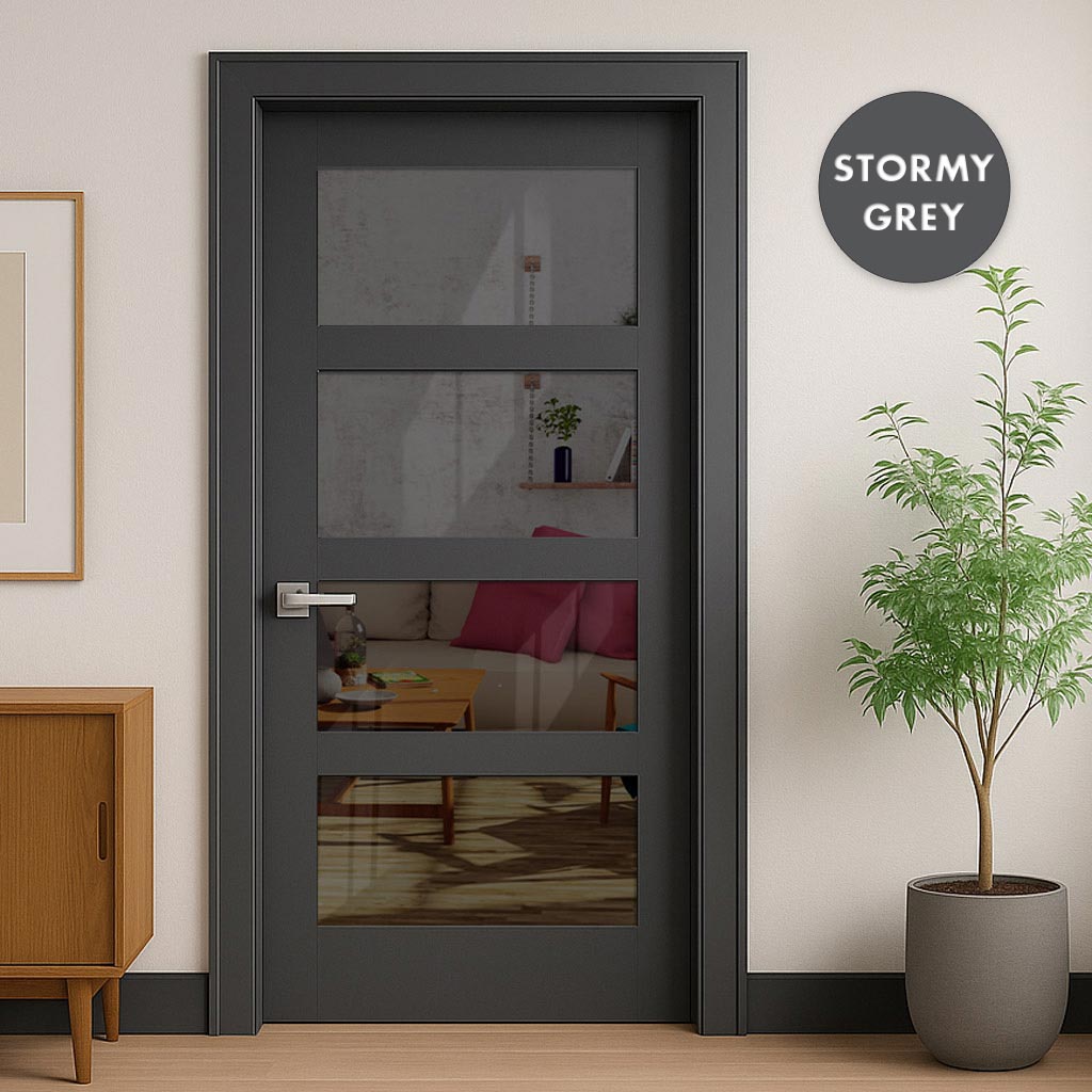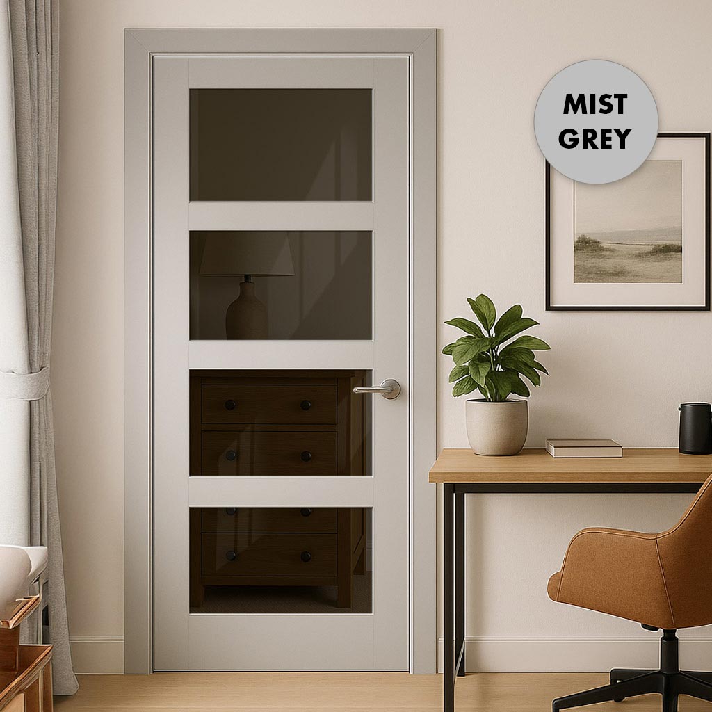 UK Made to Measure - Ashford 4L Interior Door - Tinted Glass - Premium Primed - 7 Colour Options