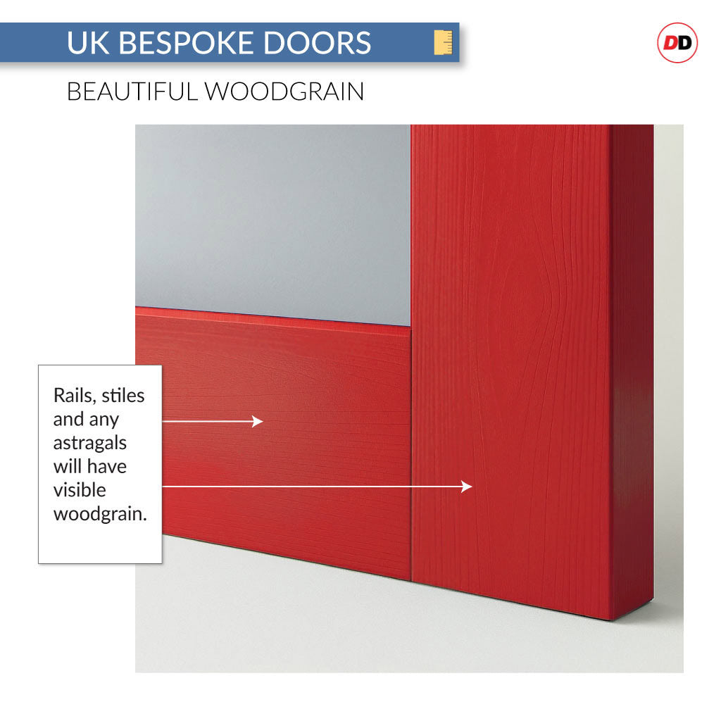 This is a made to measure interior door, produced entirely in Scotland, UK. Its local craftsmanship not only makes it unique but also enables fast production and delivery - as quick as your local joinery. Each bespoke door is crafted using solid composite wood and high-quality glass sourced from Glasgow.