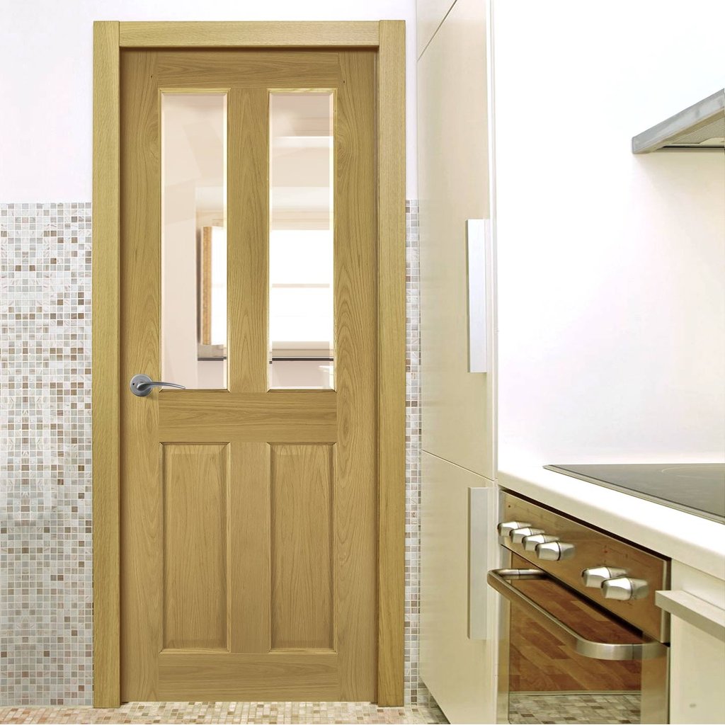 Bury Real American White Oak Crown Cut Veneer Internal Door - Clear Bevelled Glass - Prefinished