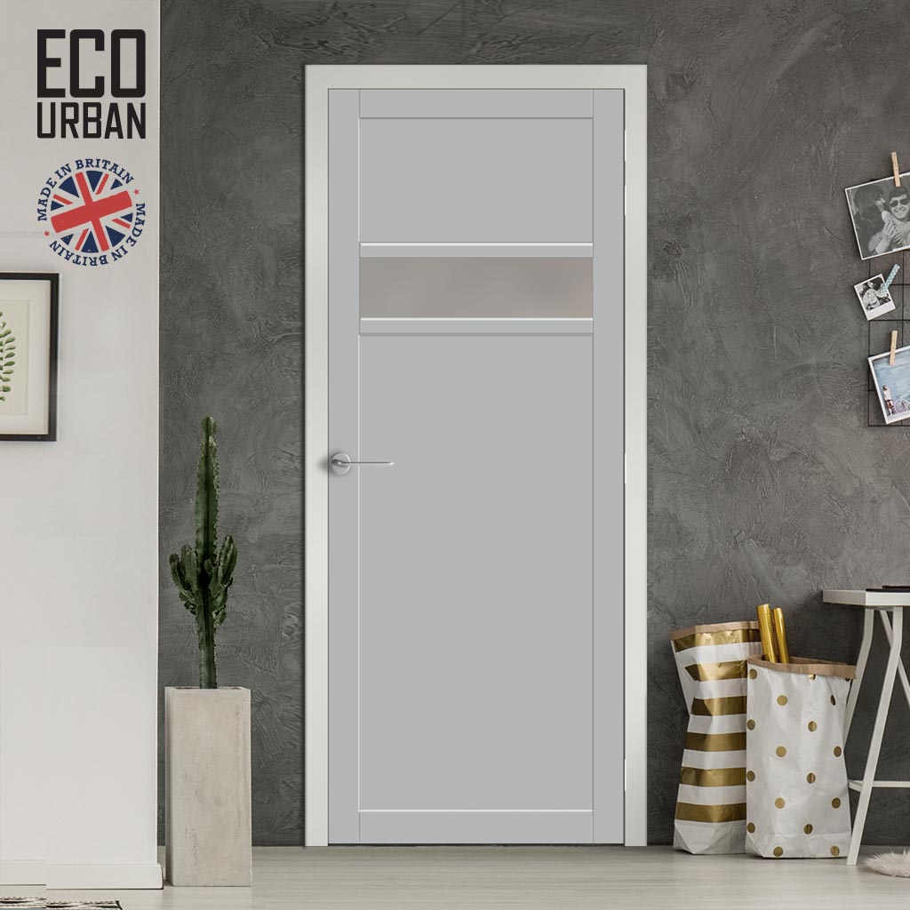Handmade Eco-Urban Orkney 1 Pane 2 Panel Solid Wood Internal Door UK Made DD6403SG Frosted Glass - Eco-Urban® Mist Grey Premium Primed