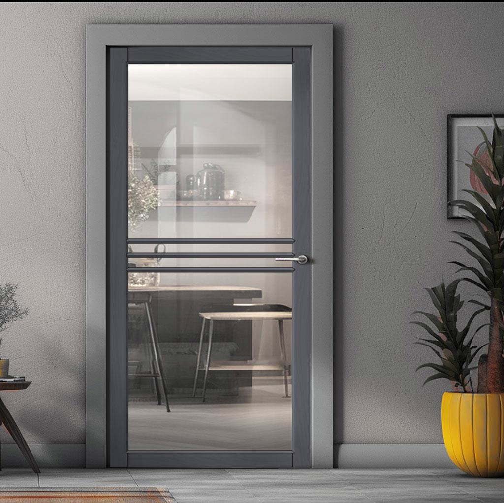 Adina Solid Wood Internal Door UK Made DD0107C Clear Glass - 7 Colour Options Premium Primed - Urban Lite® Bespoke Sizes