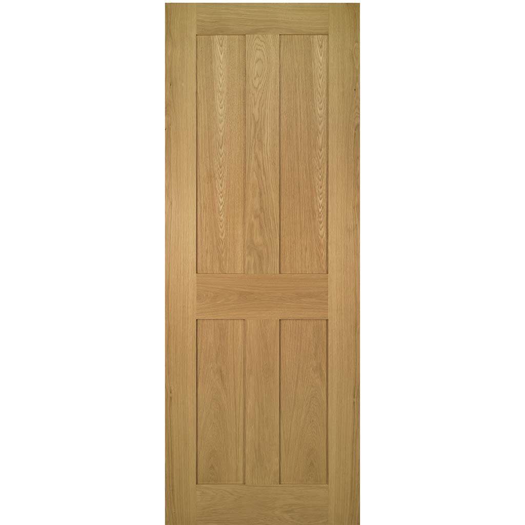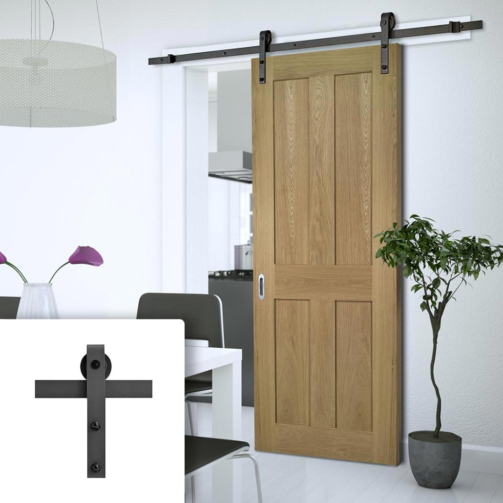Single Sliding Door & Black Barn Track - Eton American Oak Veneer Door - Unfinished