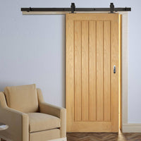 Top Mounted Black Sliding Track & Door - Mexicano Oak Door - Unfinished