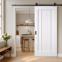 The Top Mounted Black Sliding Lincoln Door brings a modern, minimalist look to any interior. With its sleek black top-mounted sliding track, this single door glides smoothly while saving floor space.