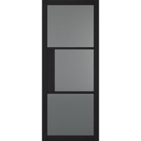 Pass-Easi Two Sliding Doors and Frame Kit - Tribeca 3 Pane Black Painted Door - Tinted Glass