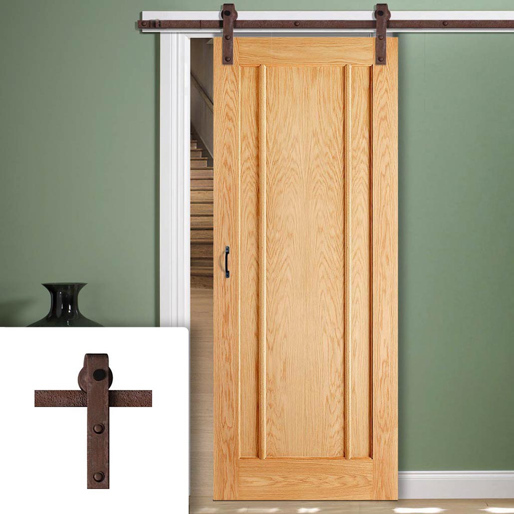 Single Sliding Door & Straight Antique Rust Track - Lincoln 3 Panel Oak Door - Unfinished