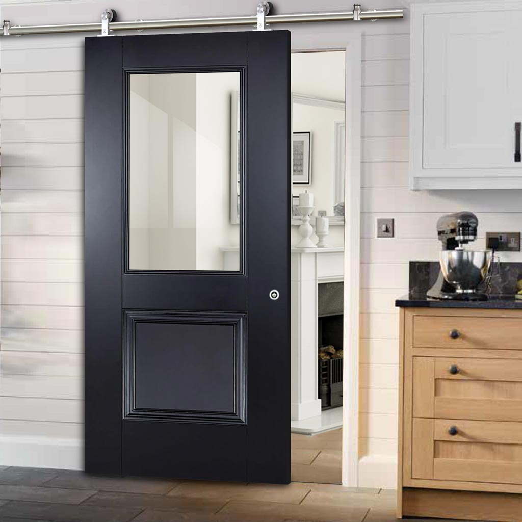 Sirius Tubular Stainless Steel Sliding Track & Arnhem Black Primed Door - Clear Glass - Unfinished