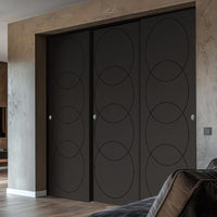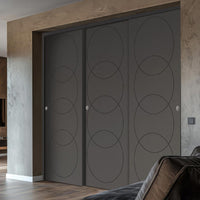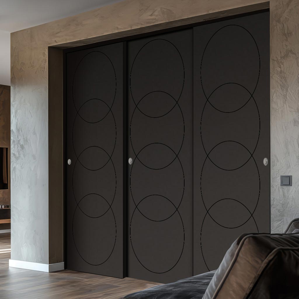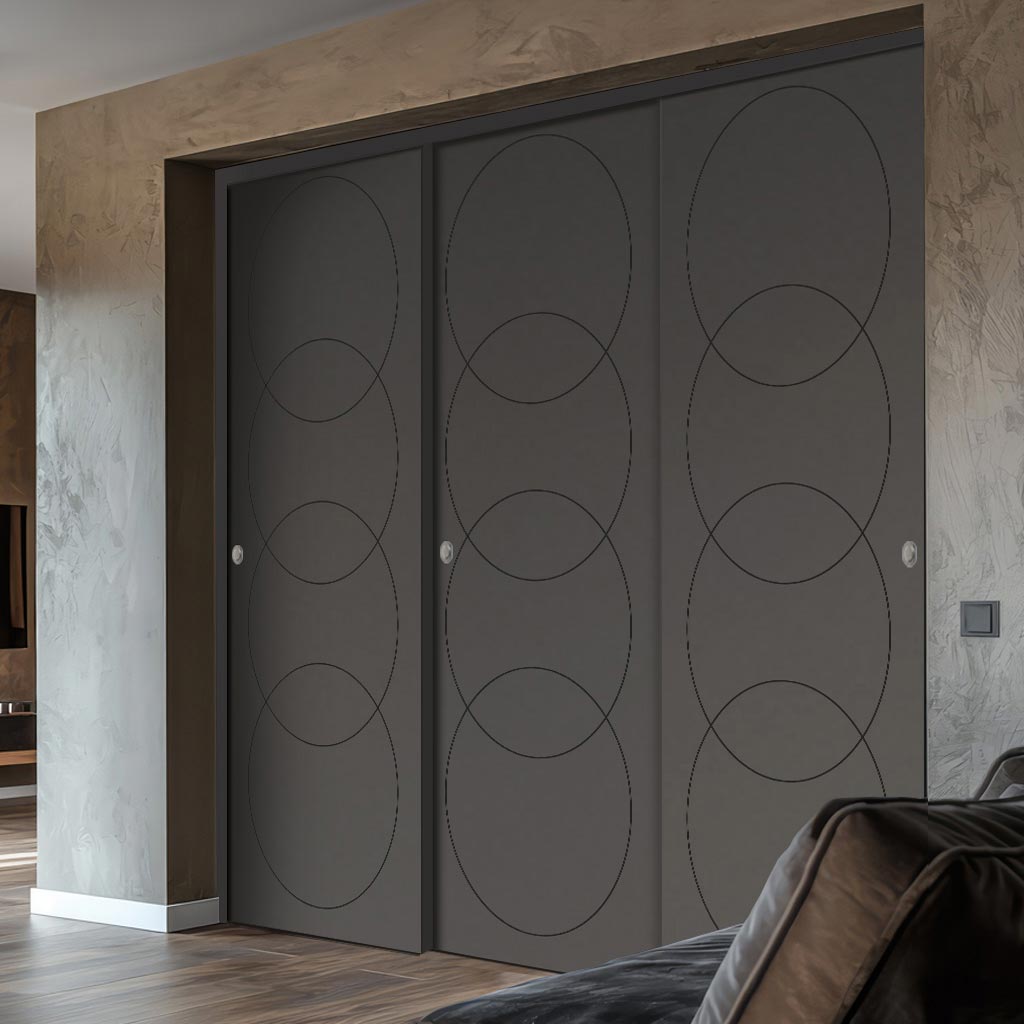 Three Sliding Minimal Wardrobe Doors & Frame Kit - V-Line® Grooved Flush Door V011 - Premium Primed - Six Colour Options