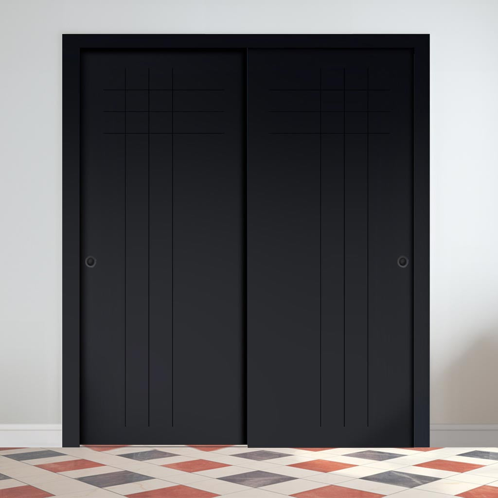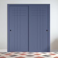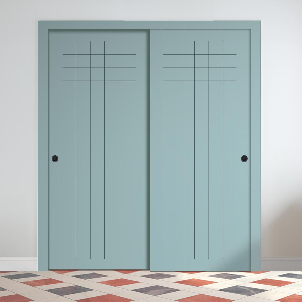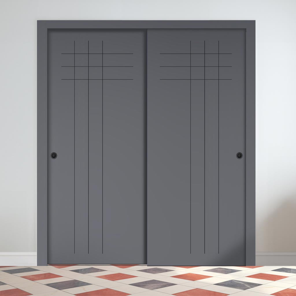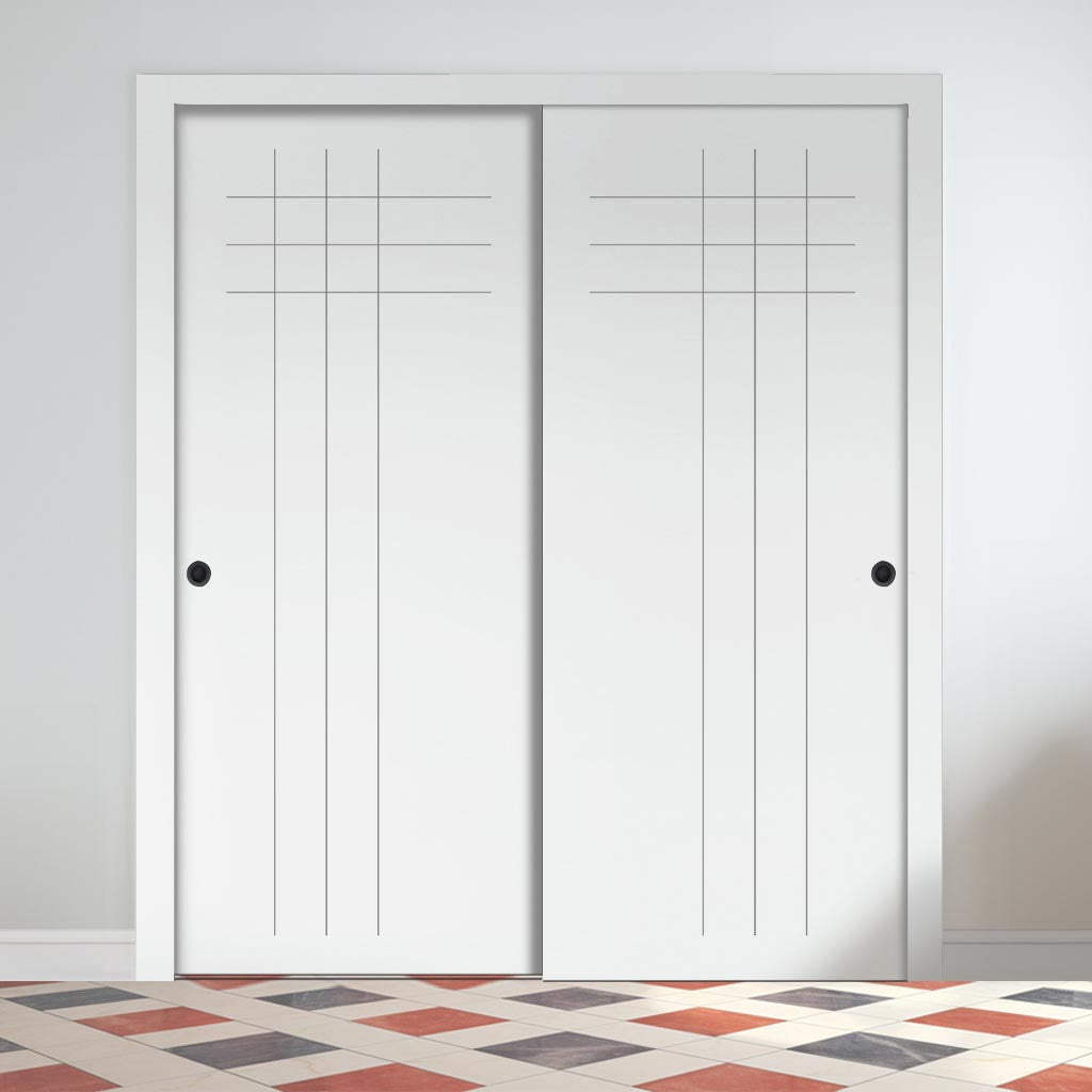 Two Sliding Minimal Wardrobe Doors & Frame Kit - V-Line® Grooved Flush Door V074 - Premium Primed - Six Colour Options