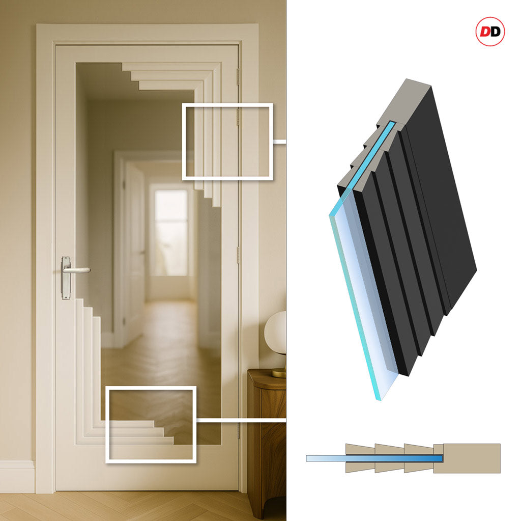 Urban Deco® Solid Wood Internal Door UK Made - Clear Glass - Cloud White Premium Primed - Bespoke Sizes