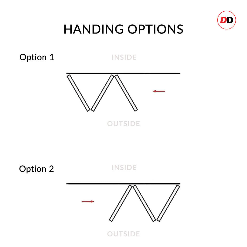 Please select the side towards which the door set will fold when viewed from outside. Please see "HANDING OPTIONS" image for reference. IMPORTANT:  Please read this information: What Is Handing?