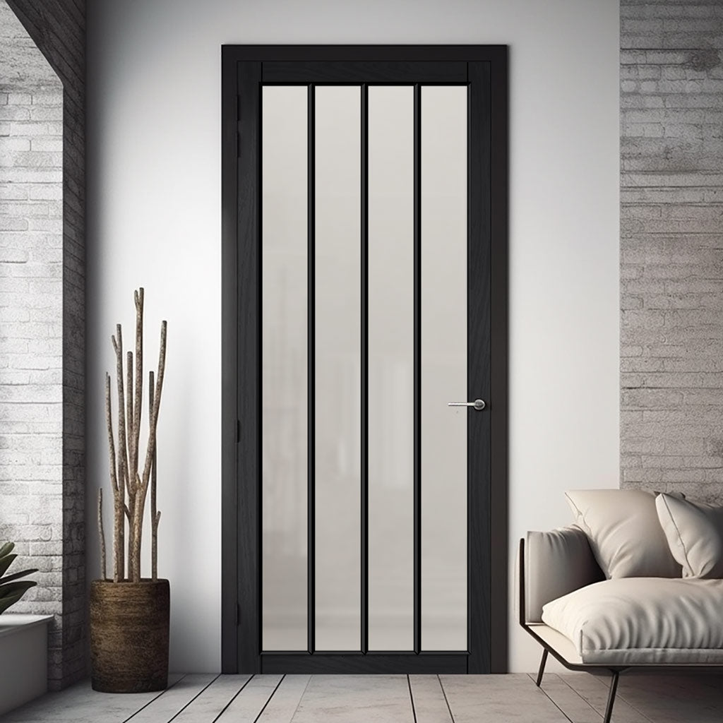 Adiba Solid Wood Internal Door UK Made DD0106F Frosted Glass - 7 Colour Options Premium Primed - Urban Lite® Bespoke Sizes