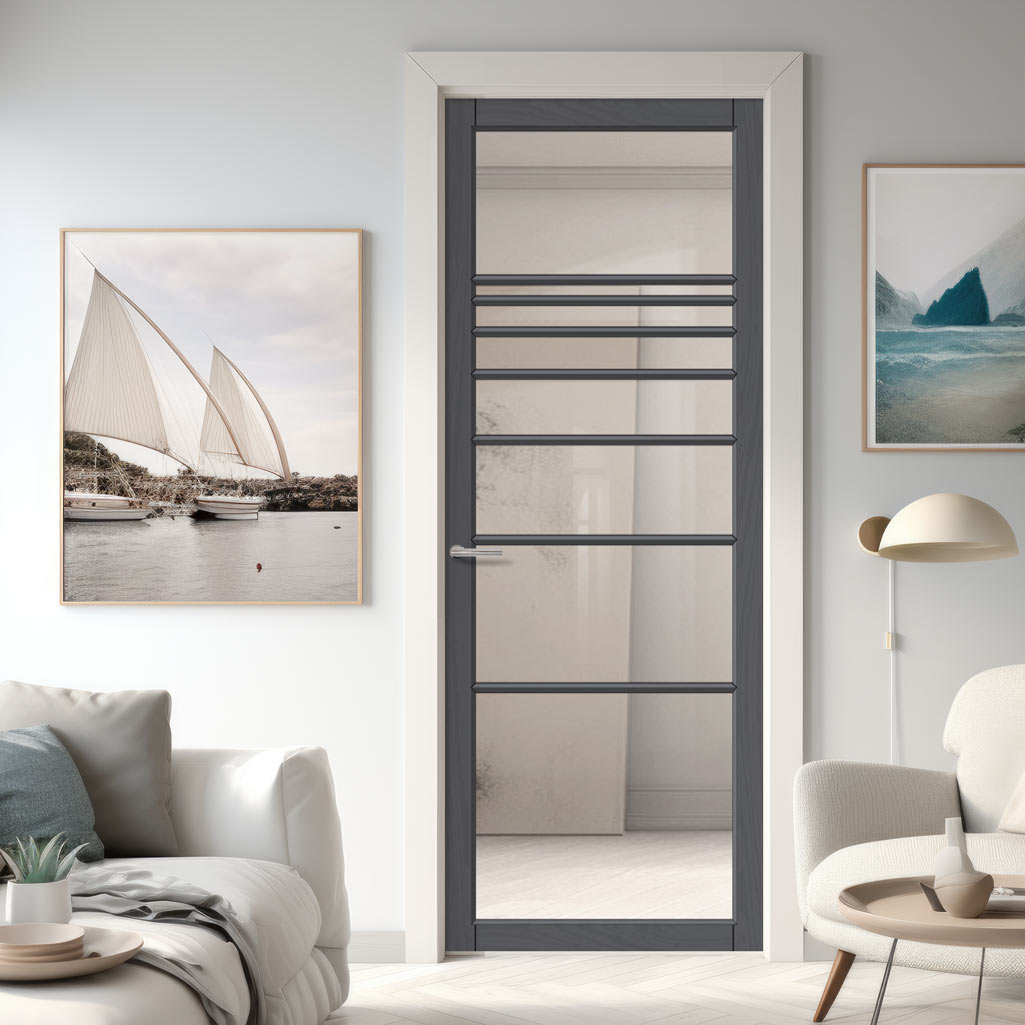 Amoo Solid Wood Internal Door UK Made DD0112C Clear Glass - 7 Colour Options Premium Primed - Urban Lite® Bespoke Sizes