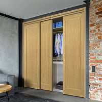 Three Sliding Maximal Wardrobe Doors & Frame Kit - Walden Real American Oak Veneer Door - Unfinished