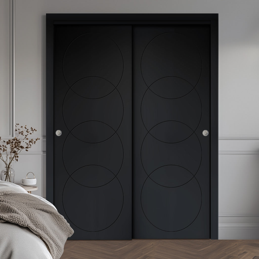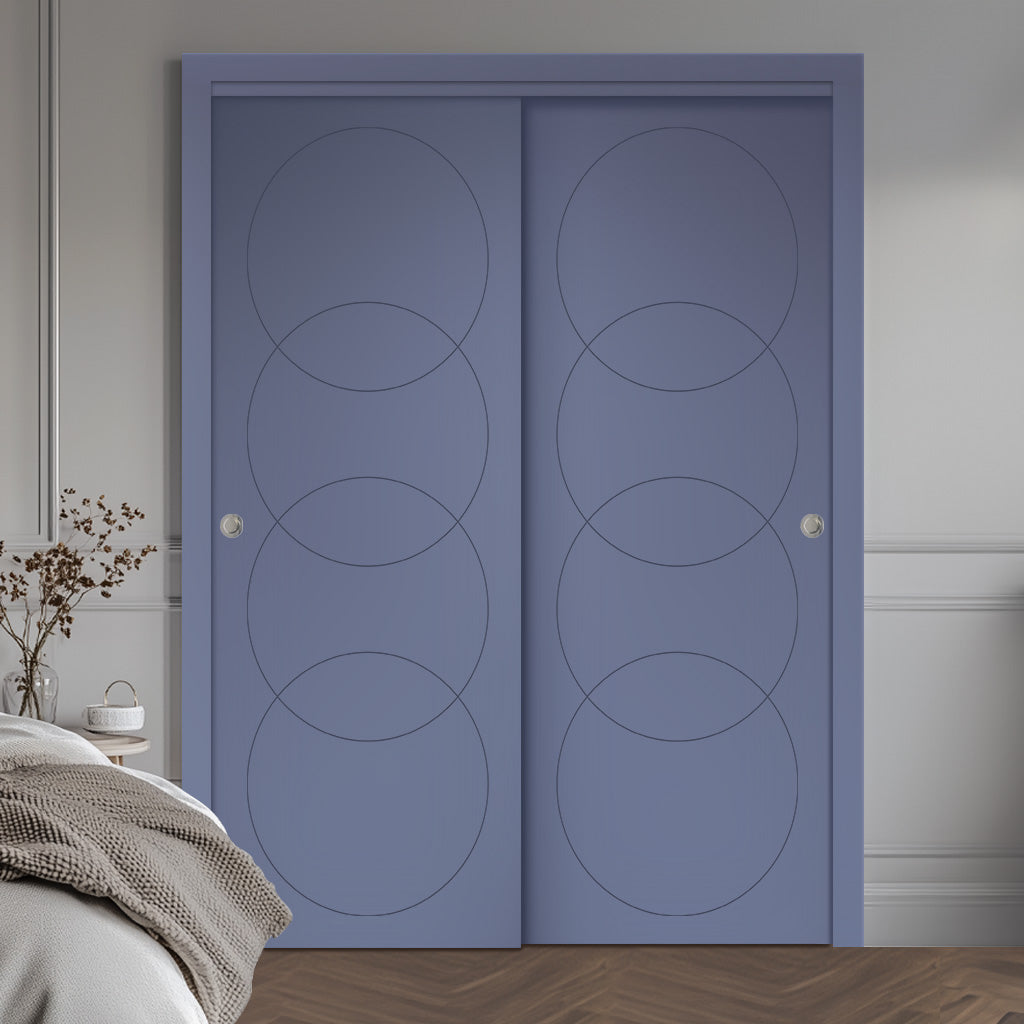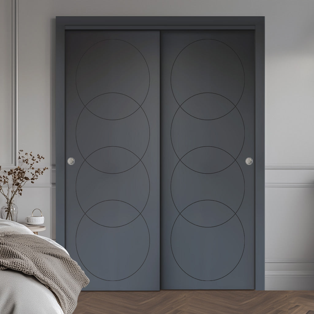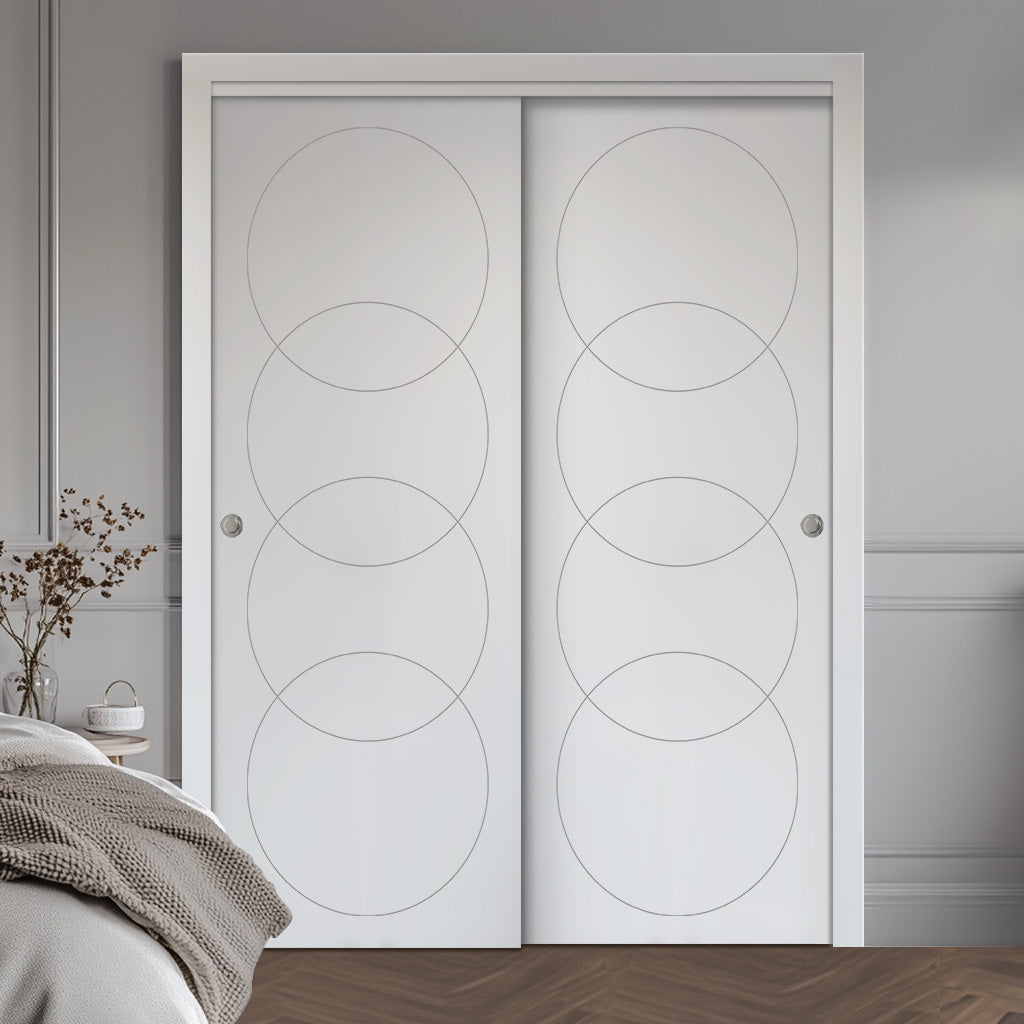 Two Sliding Maximal Wardrobe Doors & Frame Kit - V-Line® Grooved Flush Door V011 - Premium Primed - Six Colour Options