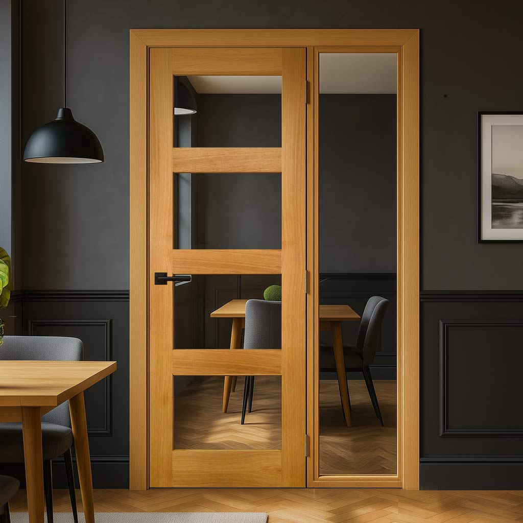 Oak Room Divider - Coventry Shaker Glazed Prefinished Door with Full Glass Side - 2018mm High - Multiple Widths