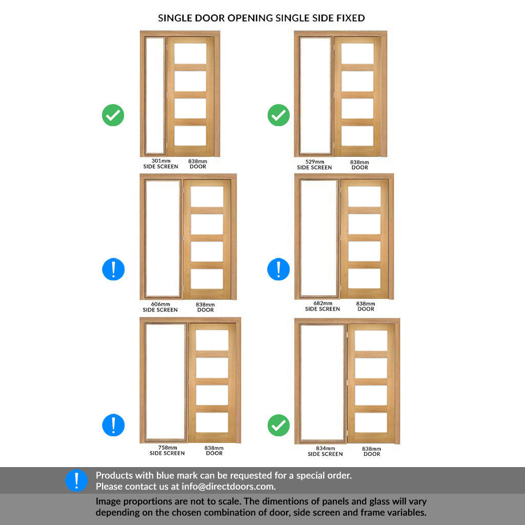 - Sizes: Other sizes (using 762 doors) are available on request, please refer to the table below, to order please contact us at info@directdoors.com