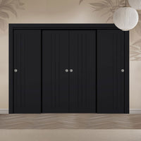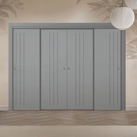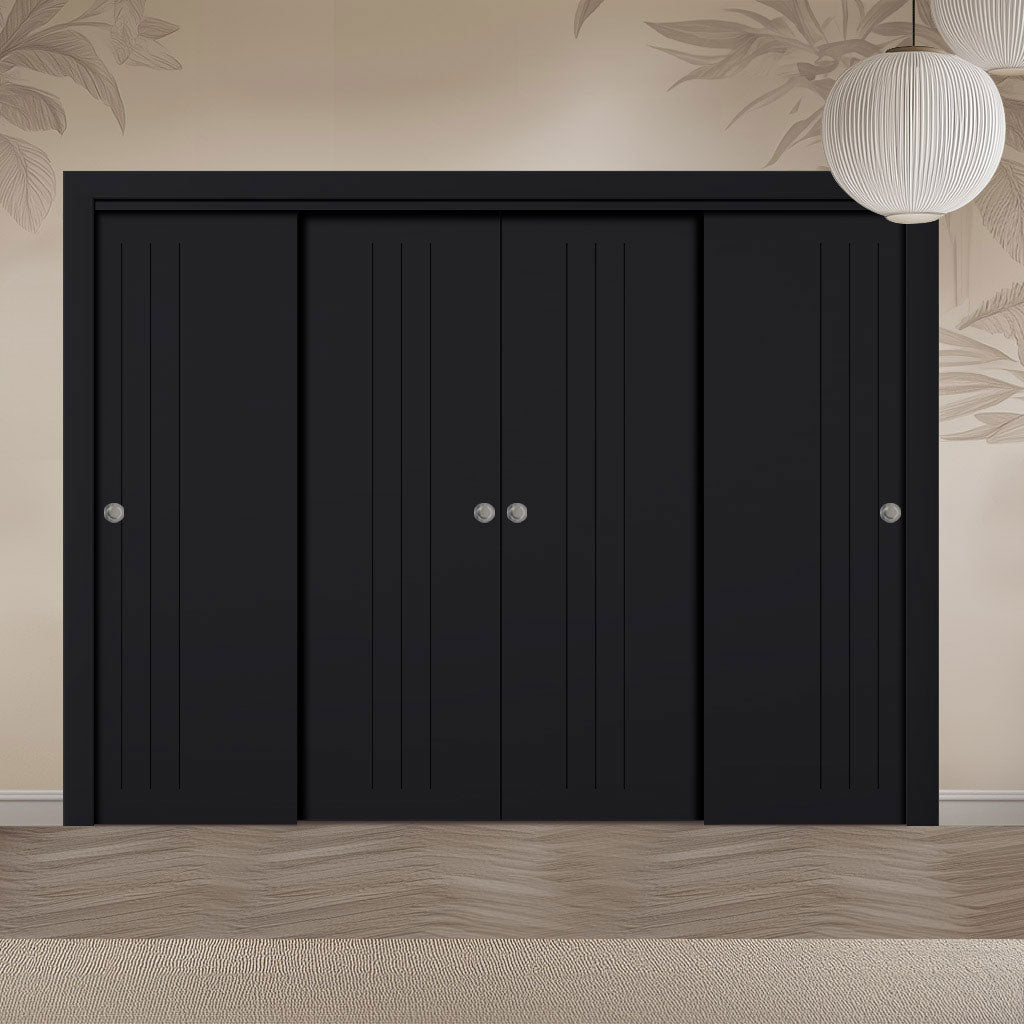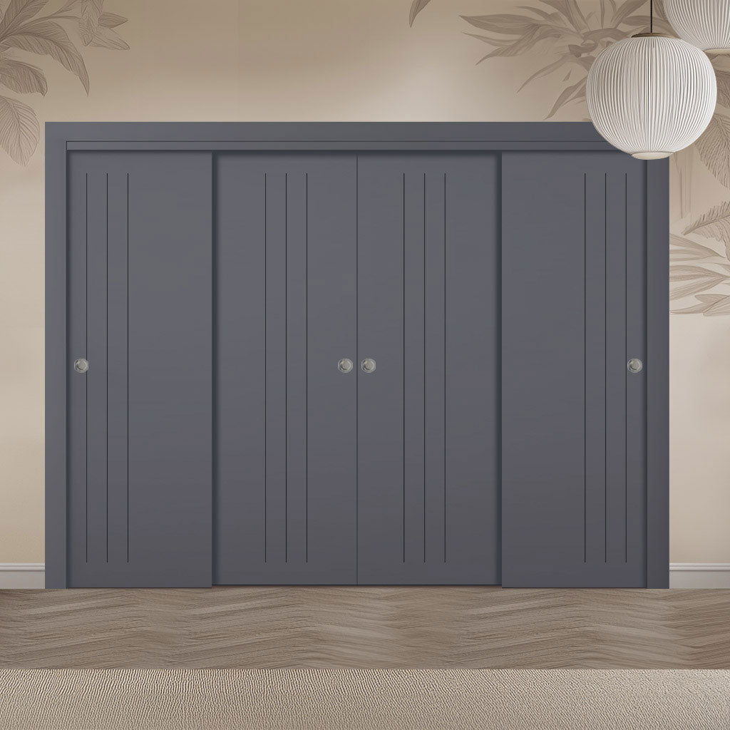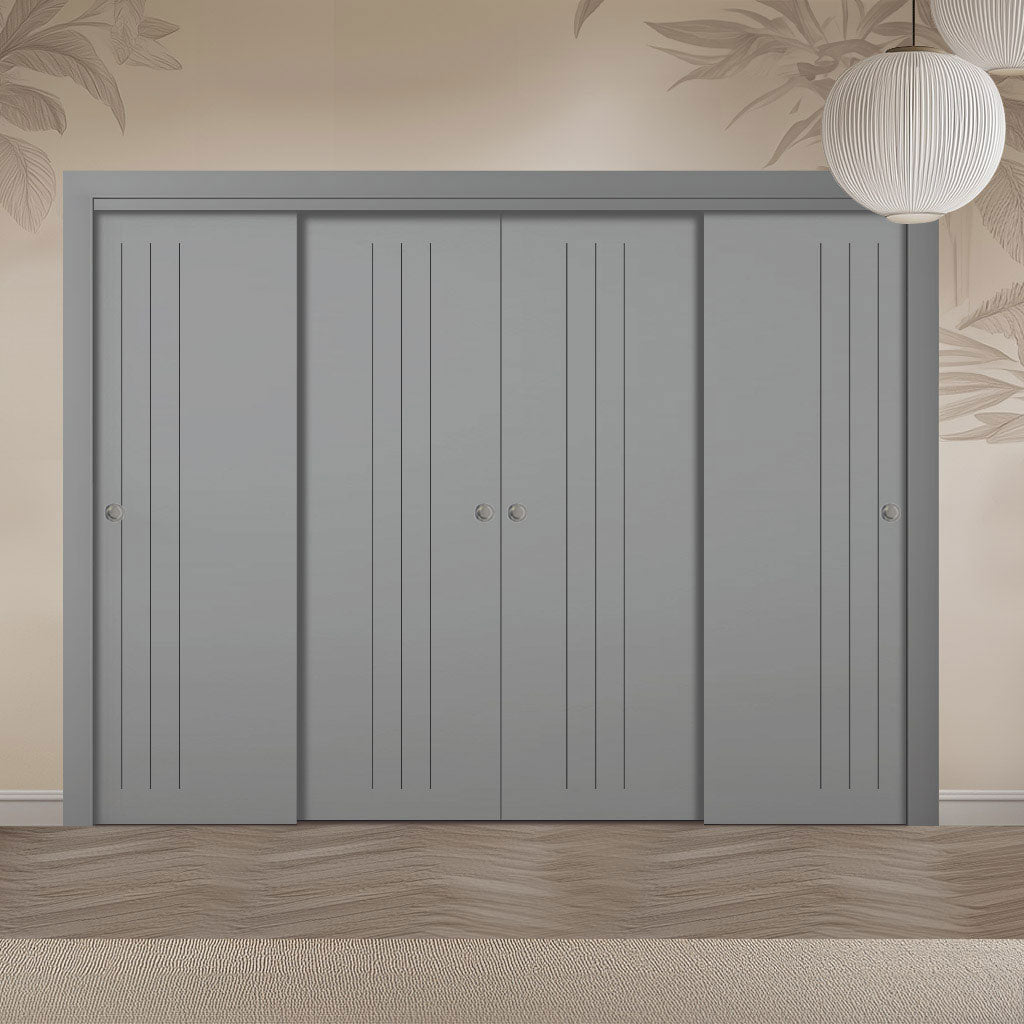 Four Sliding Maximal Wardrobe Doors & Frame Kit - V-Line® Grooved Flush Door V073/V073A - Premium Primed - Six Colour Options