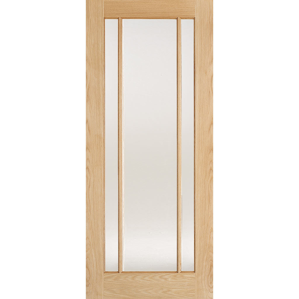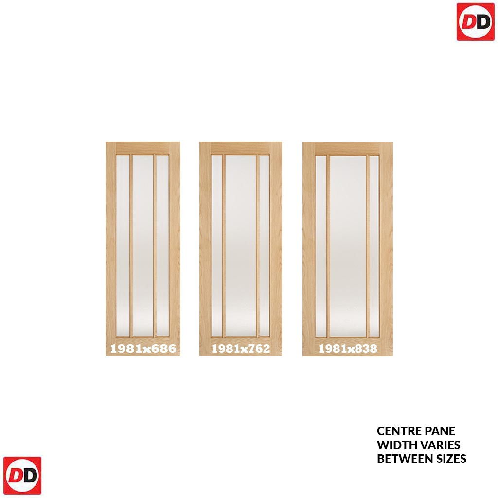 Double Sliding Door & Wall Track - Lincoln 3 Pane Oak Doors - Frosted Glass - Unfinished