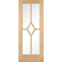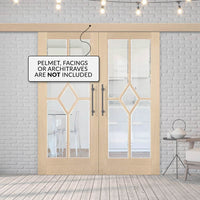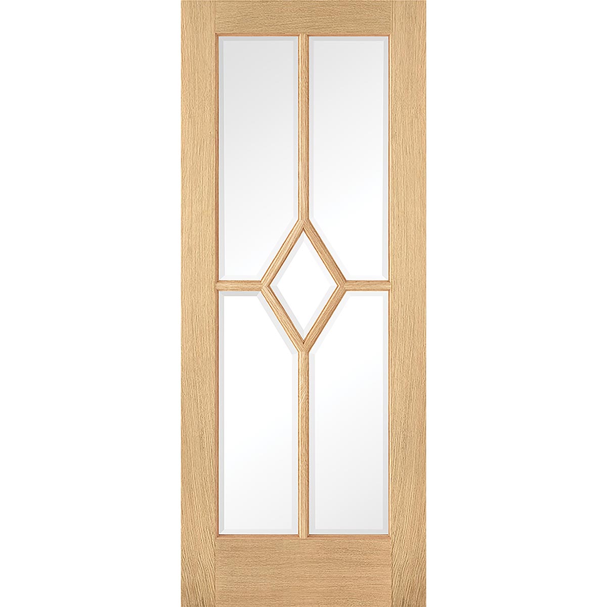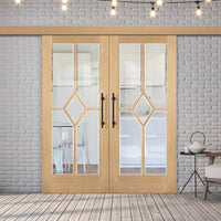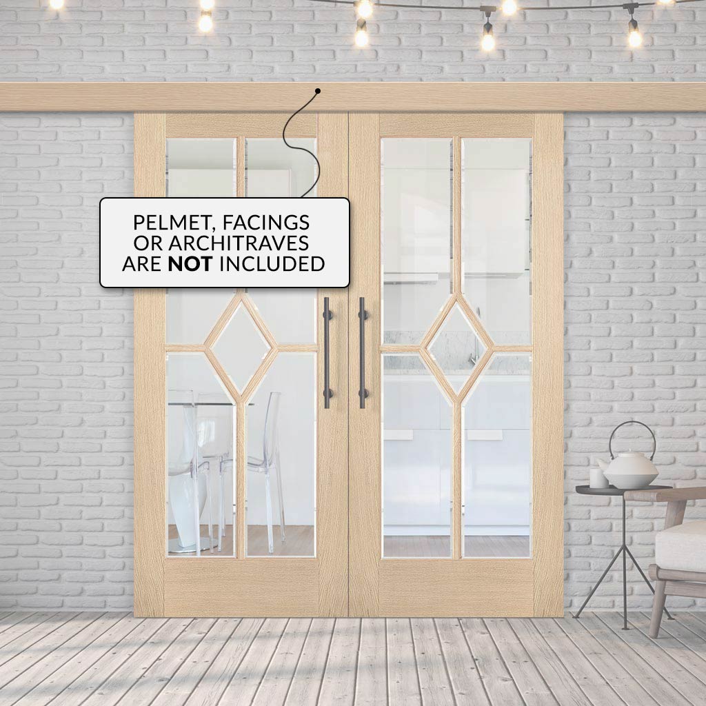 Double Sliding Door & Wall Track - Reims Diamond 5 Panel Oak Door- Clear Bevelled Glass - Prefinished