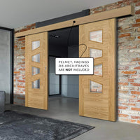 Double Sliding Door & Wall Track - Seville 4LS Glazed Oak Door - Irregular Glass Panes - Prefinished
