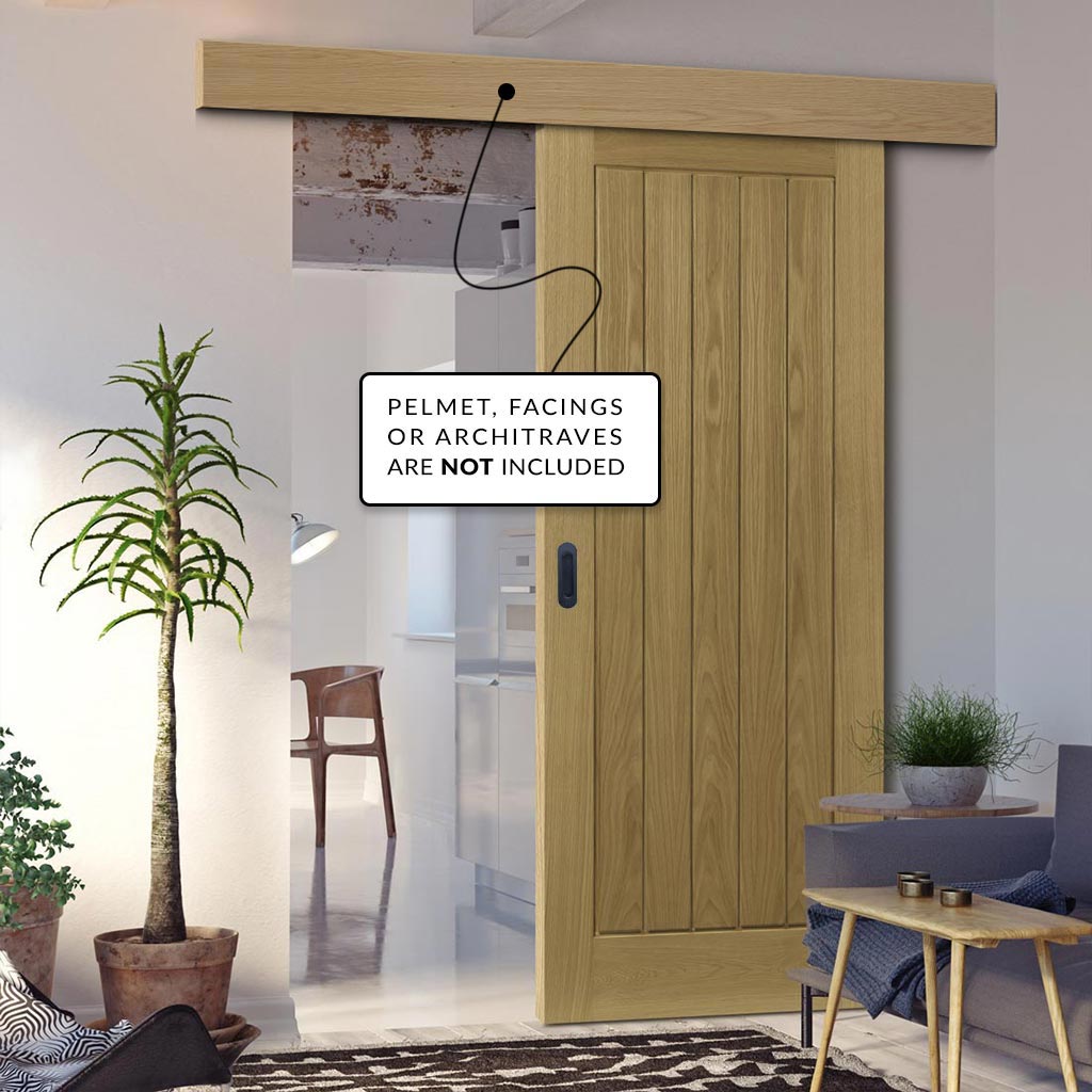 Single Sliding Door & Wall Track - Ely Oak Door - Unfinished
