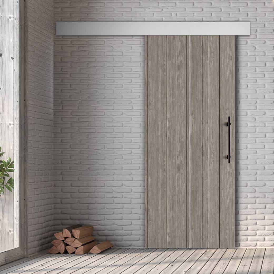 Single Sliding Door & Wall Track - Laminate Montreal Light Grey Door - Prefinished