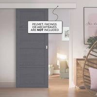 Single Sliding Door & Wall Track - Soho 4 Panel Charcoal Door - Prefinished