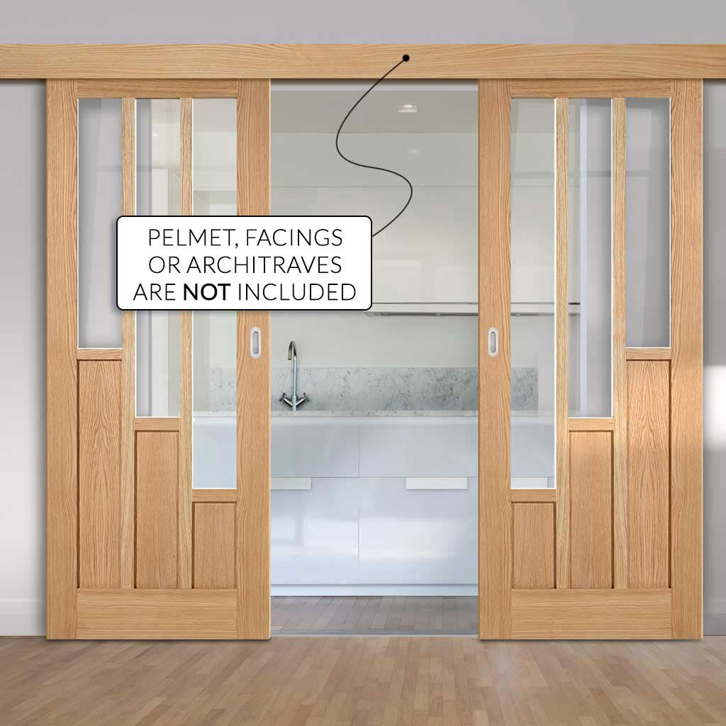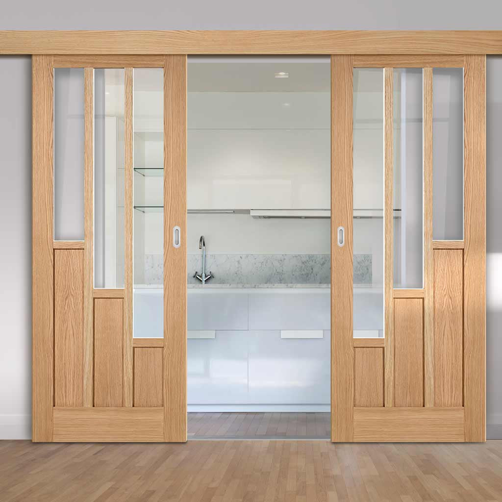 Double Sliding Door & Wall Track - Coventry Contemporary Oak Doors - Clear Glass