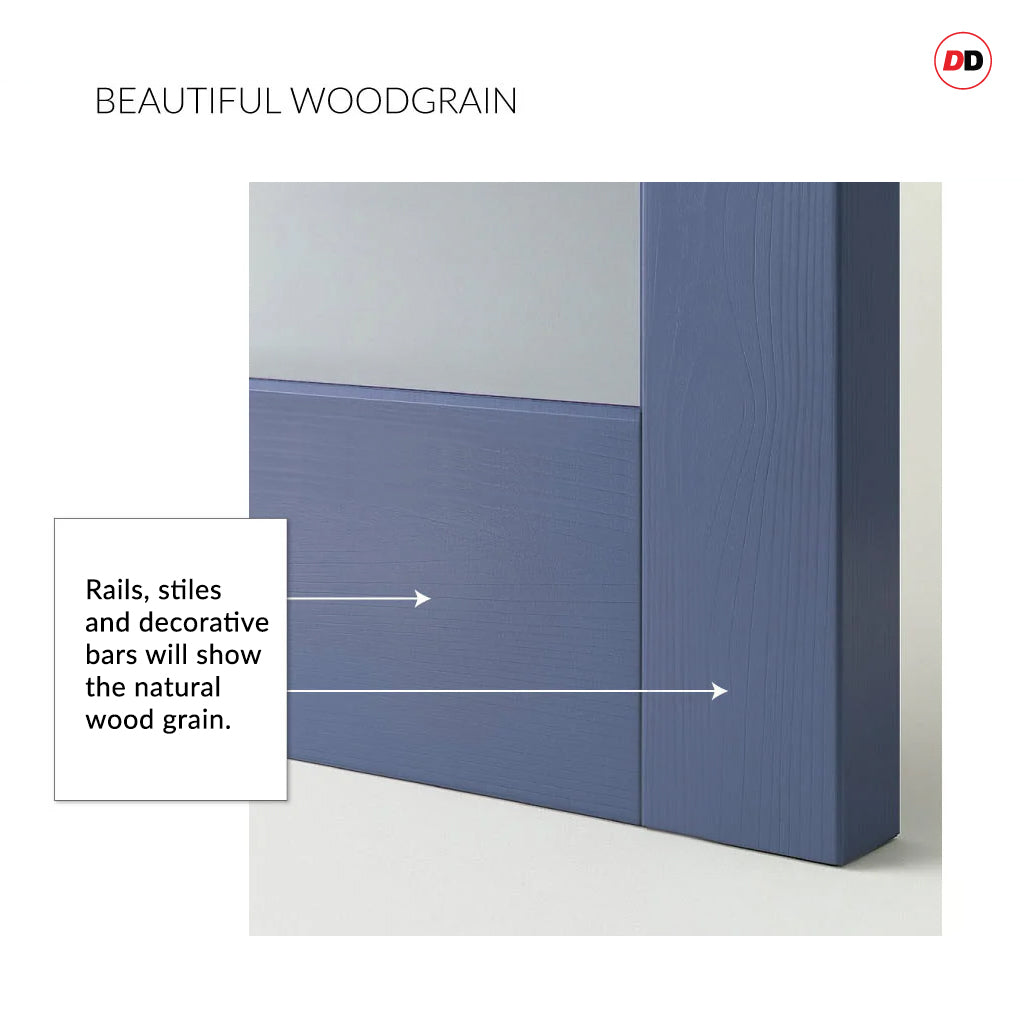 Urban Deco® Solid Wood Internal Door UK Made - Clear Glass - Heather Blue Premium Primed - Bespoke Sizes