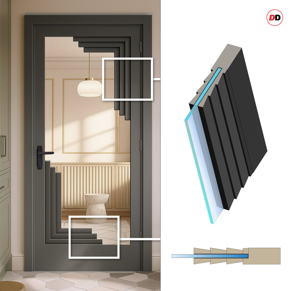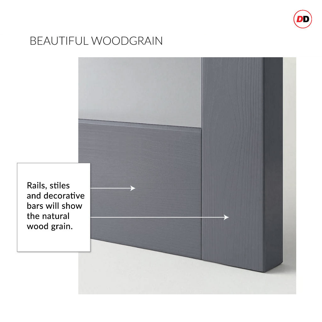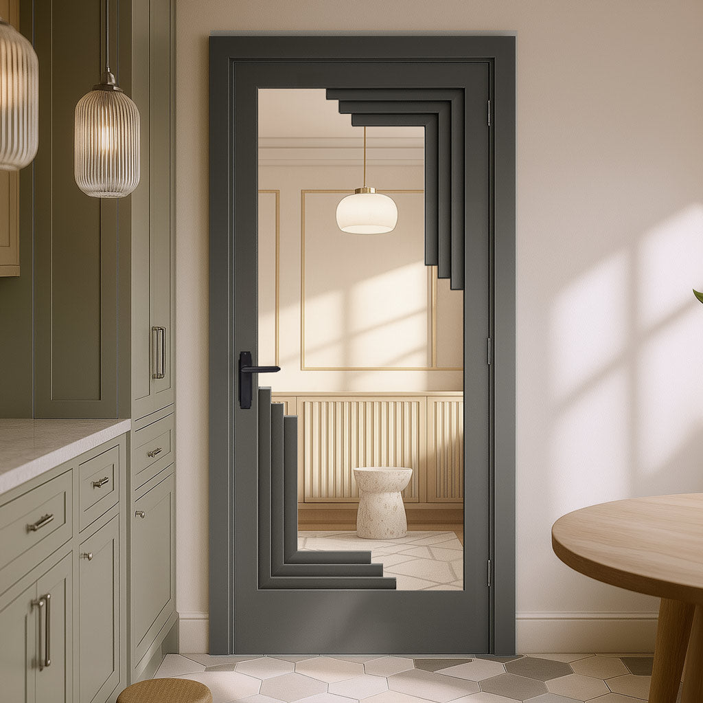 Urban Deco® Solid Wood Internal Door UK Made - Clear Glass - Stormy Grey Premium Primed - Bespoke Sizes