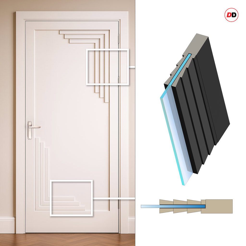 Designed and made in the UK, each door has a solid composite core, balanced proportions and finishes that honour the style without trapping it in the past. This is not a copy. It is a modern take on Art Deco that feels timeless from the moment it is fitted.