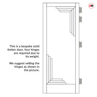 All doors in the DirectDoors Bespoke Urban Deco®range are built to a solid 40-45mm thickness. Top rails and stiles measure 90mm, bottom rail 190mm, with 40mm design feature securely bonded to glass.