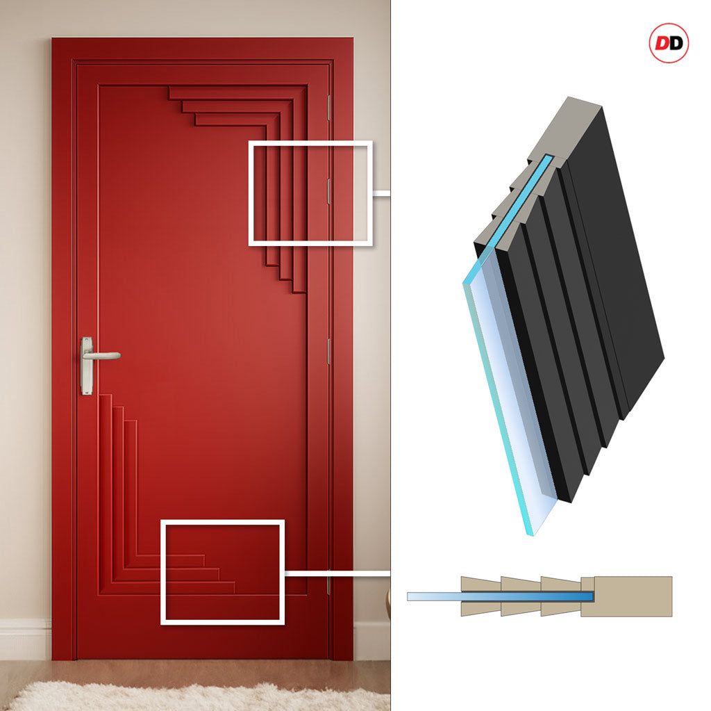 This design really comes alive in red. The layered corner catches the light and the colour gives it presence, so the door draws the eye the moment you enter. It works beautifully in a hallway or living room where you want one strong note.