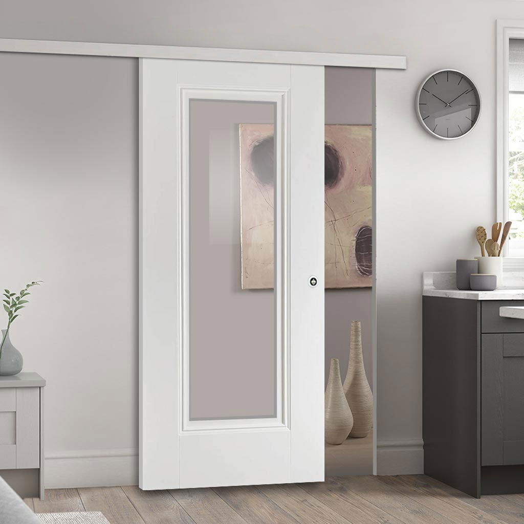 Premium Single Sliding Door & Wall Track - Eindhoven 1 Pane Door - Clear Glass - White Primed