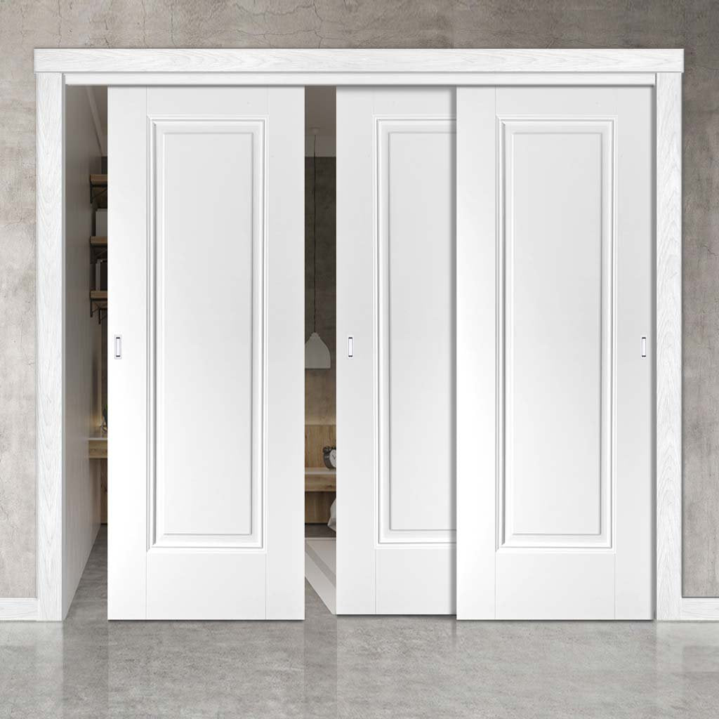 Pass-Easi Three Sliding Doors and Frame Kit - Eindhoven 1 Panel Door - White Primed