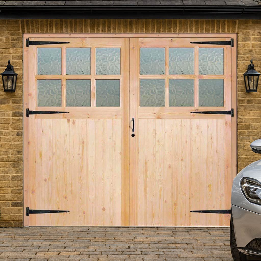 Traditional Pine Garage Door Pair - Flemish Single Glazing - Unfinished