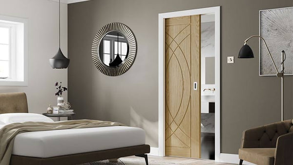Our pocket door for bathrooms offering includes every conceivable style and size of pocket door, from those bathroom doors for small spaces to our very large doors, we take a great deal of pride in putting together these door ideas to allow your mind to wander - go choose! (Product shown is Treviso door)